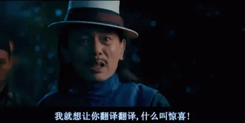 The iconic 'What is a surprise' scene from Let the Bullets Fly. Perfect for demanding an explanation or mocking someone's absurd claims.